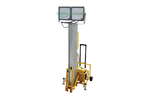 3、升降部分采用電動推桿升降方式,一鍵控制升降及任意高度懸停,滿足現場指揮操作的方便性,最高升起高度可達5.2米,燈頭可上下0~135°范圍內翻轉調節照射角度。